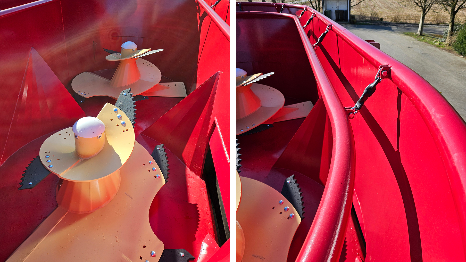 Videre er vogna utstyrt med EDS fôrluker på venstre side og bak. Utformingen av blandesneglene og de unike EDS-lukene sørger for en jevn og optimal utfôring.
