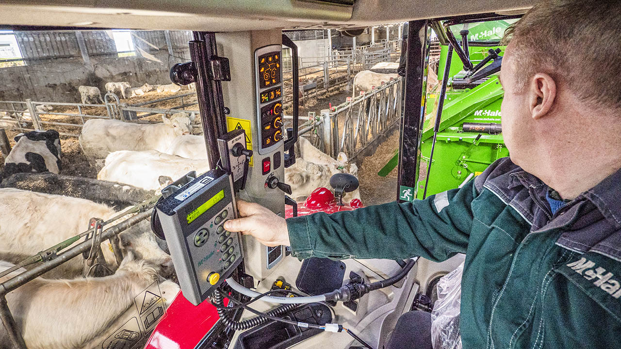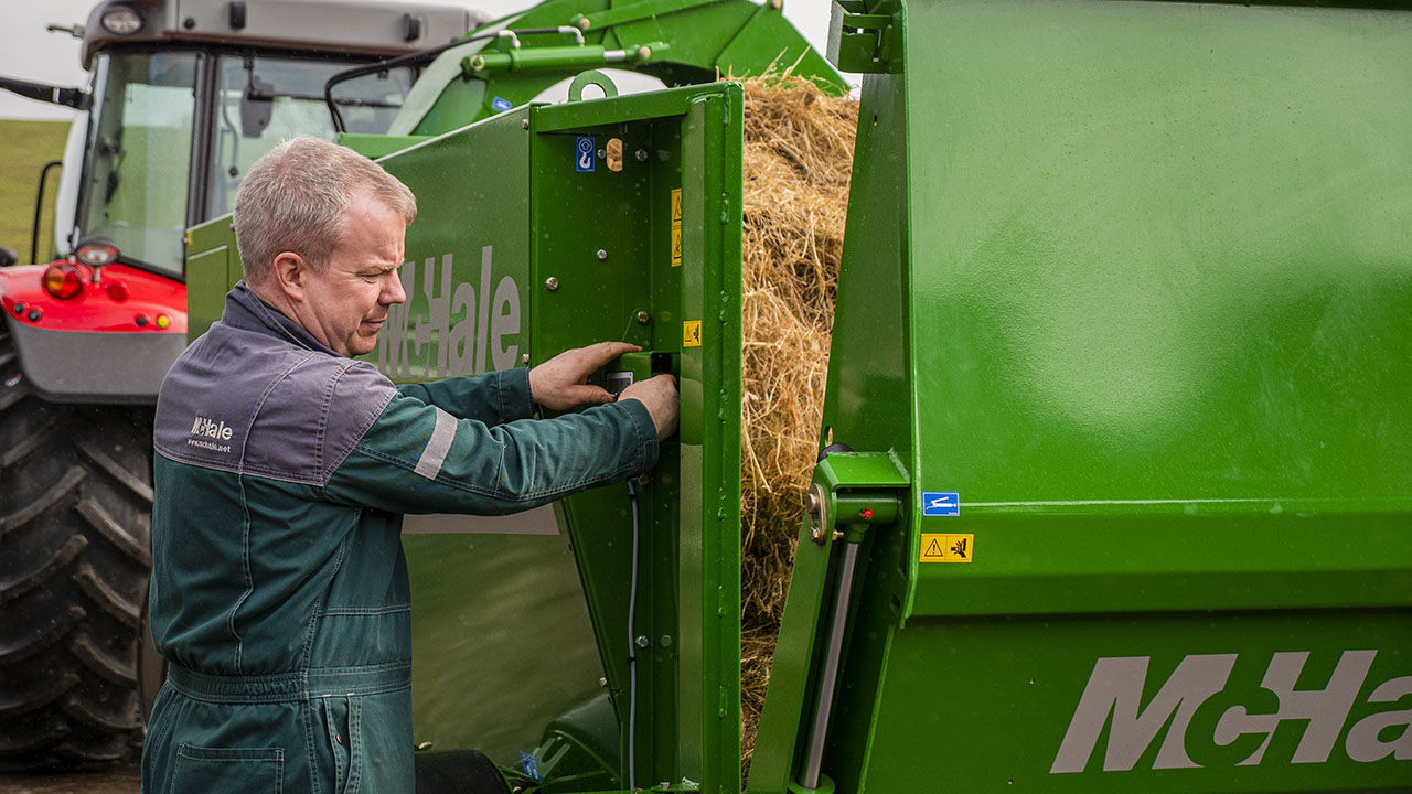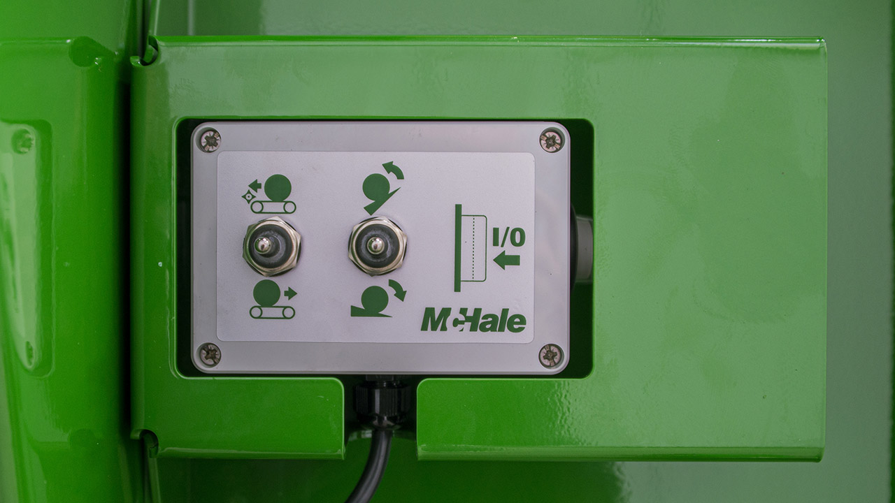 McHale C4 styres via en elektronisk styreboks som gir føreren tilgang til alle maskinens funksjoner fra førersetet. Ekstern lastebetning er standard, slik at bunnbeltet og bakluken kan betjenes når du tar av nettet eller plast ved lasting.