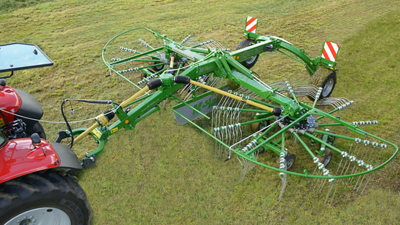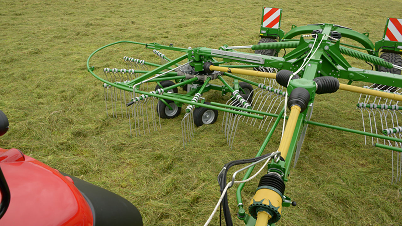 Kraftige tinder sørger for optimalt resultat enten det flere skåres skal samles til én, eller om det rakes på breispredt gras. Avhengig av modell leveres rivene med 4 eller 6 bærehjul under hver rotor, noe som sikrer konstant arbeidshøyde.