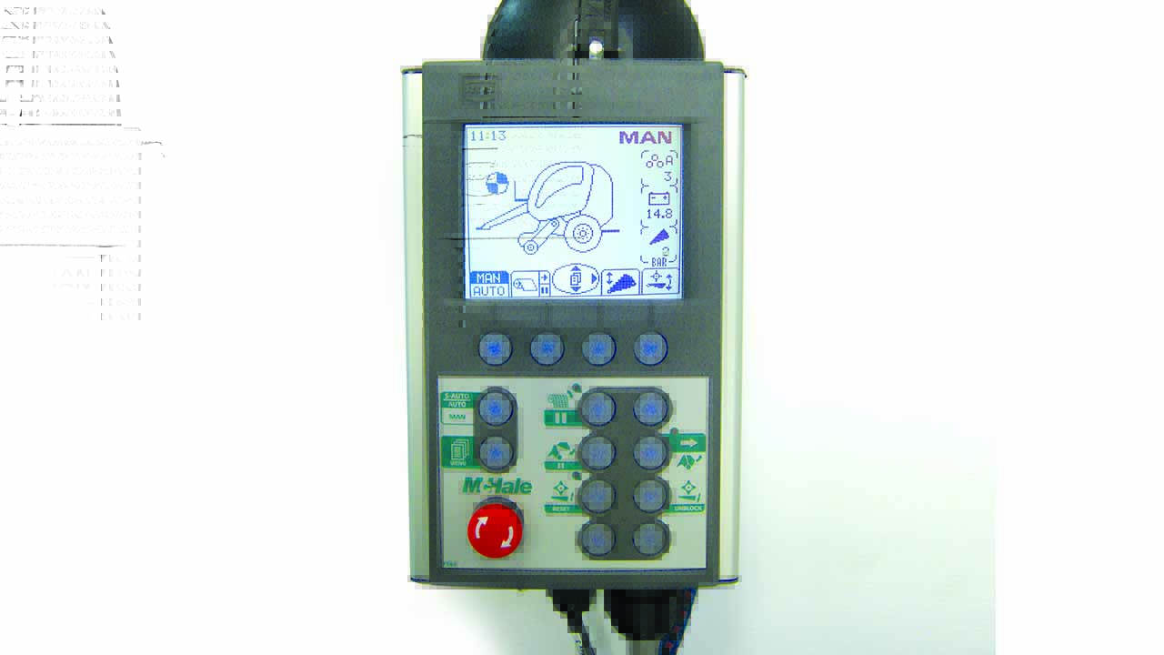 McHale V-serie rundballepresser har variabelt kammer med 3 belter. Pressekammeret har en bredde pÃ¥ 1,23 m. Ballediameteren er regulerbar mellom henholdsvis 0,6-1,68 meter eller 0,6 – 1,9 meter.