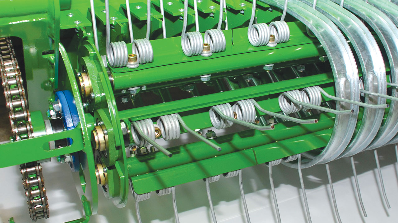 Nettstrammingen har trinnløs justering for å sikre optimal nettbruk og balleform. Nettet går 180 grader rundt gummimaterrullen, noe som eliminerer eventuell sluring av nett under innmating. Avhengig av modell, justeres antall lag med nett enten på pressa eller via styreboksen.