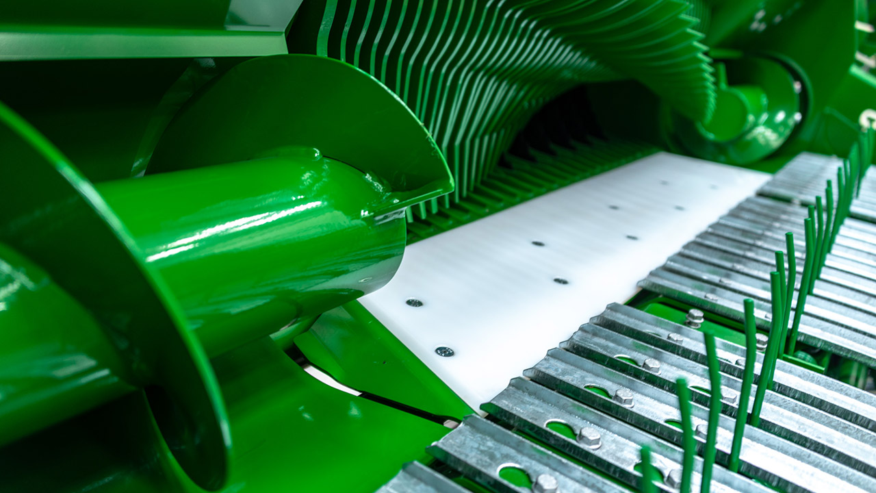 Rotoren er spiralformet og sørger for en jevn innmating, jevn belastning, og en meget høy kapasitet. Fingrene i rotoren er sveist på begge sider for overlegen styrke. På drivsiden er rotoren utstyrt med et dobbelt rullelager med langt serviceintervall. Via termianlen kan føreren velge mellom 12, 13 eller 25 innkoblede kniver. Minste kuttelengde er 46 mm.