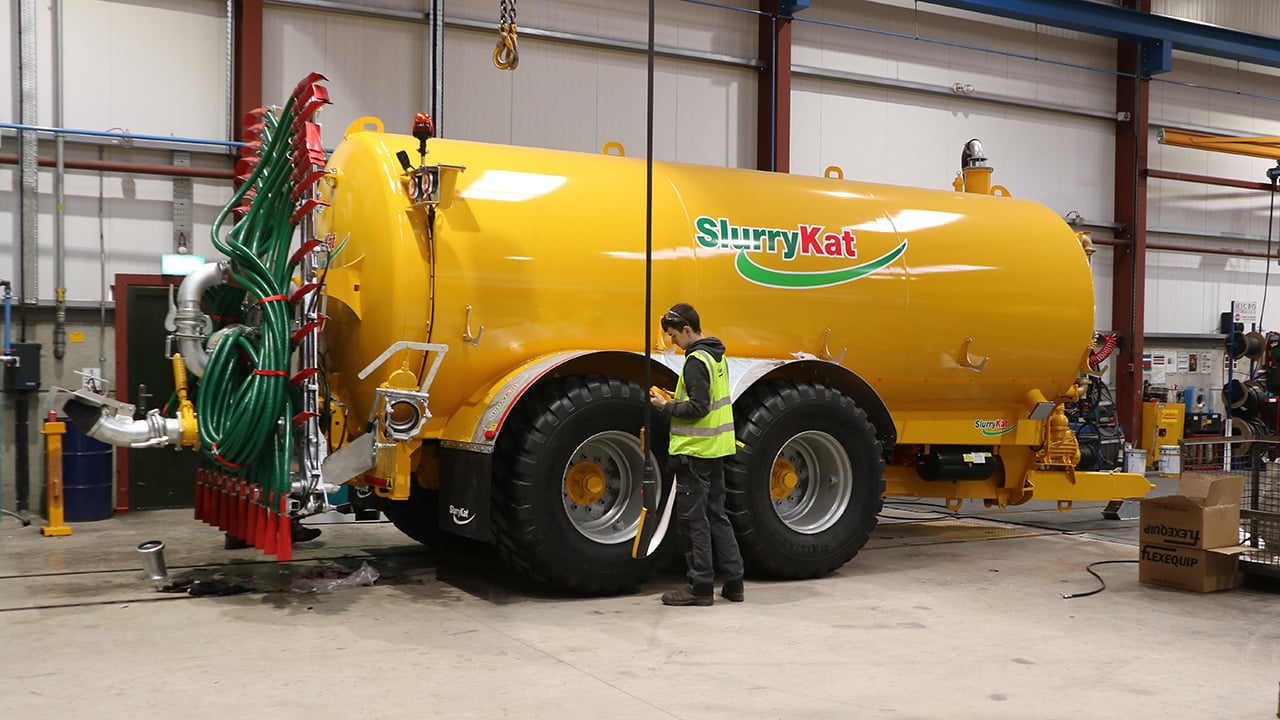 SlurryKat vakuumvogner leveres i størrelser fra 725o til 25 000 liter, og med én, to eller tre akslinger, avhengig av størrelse. Vognene har en solid konstruksjon og høy driftssikkerhet. Tankene er laget av 6mm spesialstål. Én-akslede vogner leveres med 800/65 R32 hjul.